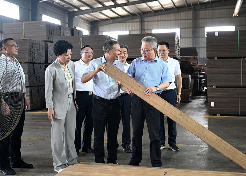 • 湖南省人大常委會黨組書記、副主任烏蘭到湖南桃花江竹材調研